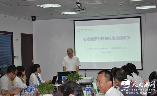 与会领导向北京市社会心理工作联合会通州工作委员会授牌。启动仪式结束后,召开了首届“通州区社会心理服务与北京城市副中心建设”高峰论坛。北京陆军总医院副主任医师肖利军、中科院心理所祝卓宏教授、北京市社会心理联合会副会长熊汉忠博士、北京工业大学实验学院副教授彭宏伟、北京财贸学院副教授王剑博士、北京中医药大学陈捷教授等相关专家,对社会心理服务与北京城市副中心建设、通州区社会心理服务的发展方向和模式进行了研讨与交流。