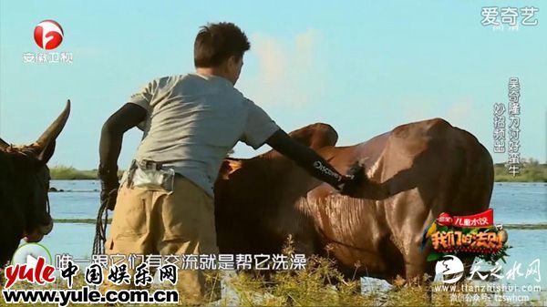 瘤牛训练困难重重,吴奇隆所驾驭的两头瘤牛脾气倔强,不听从命令,多次跑偏,跟另一辆牛车连连相撞。吴奇隆虽毫不松懈,但在一个转弯时牛车依旧发生了突然倾斜的状况。向来机敏的他被这猝不及防的抖动甩下牛车,危险的场面让在场所有人吓得手足无措。好在吴奇隆机智过人,凭借早年运动员经历及多年拍打戏的危机意识,吴奇隆顺势就地打滚用以卸力,最终化险为夷免于受伤。训练危险重重,但在确认无大碍后,吴奇隆依旧全心投入瘤牛驾驶训练。为了第二天的比赛能获取佳绩,他还独辟蹊径地用喂牛吃草的方式与其沟通感情,逐步增加默契,训练结束后的吴奇隆更是亲自给牛洗澡增进交流,可谓是为次日之战做好了充足的准备。