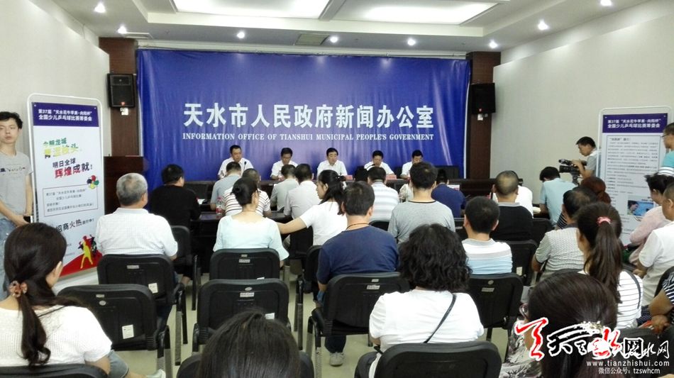 据天天天水网讯(记者何郁)“红双喜·天水花牛苹果·向阳杯”全国少儿乒乓球赛将于7月28日至8月3日在我市举行。19日,市政府新闻办举行新闻发布会,副市长霍卫平介绍有关情况,有关部门领导共同回答了媒体记者提问。10多家省市新闻媒体记者和相关单位负责人参加新闻发布会。