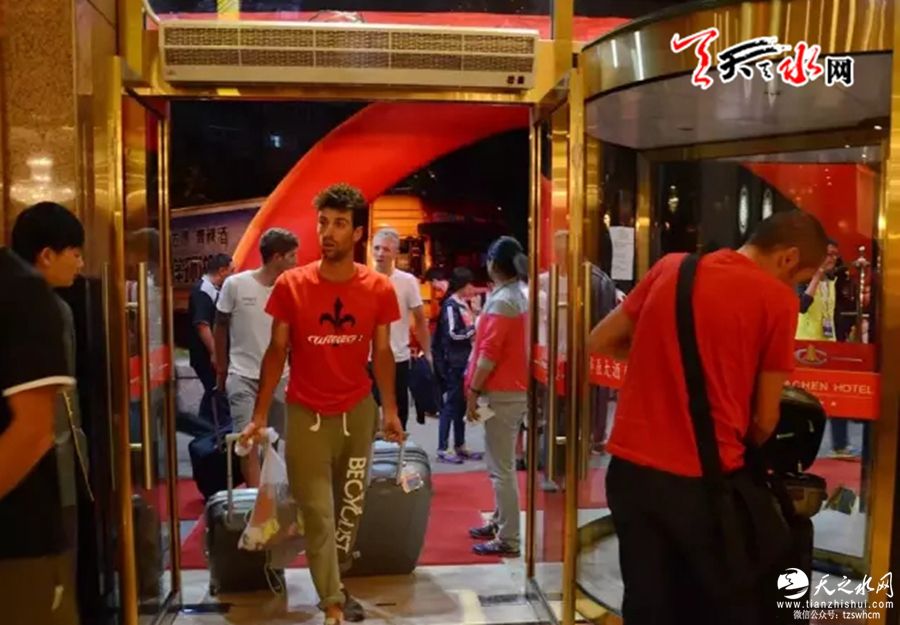 据天天天水网讯 7月24日晚21时左右,第十五届环青海湖国际公路自行车赛选手抵达天水,入驻酒店。他们将在天水休整一天后,于7月26日上午9时环绕“天水湖”进行每圈12.5公里的绕圈赛,全程100公里,共骑行8圈。(赛事路线:秦州区藉河北路市委门口(起终点)→藉河北路→迎宾桥→藉河南路→瀛池大桥→藉河北路→市委门口。)