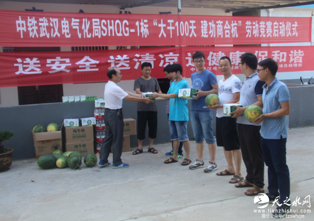 在“送安全、送清凉、送健康、送和谐”活动中,项目部工会把一箱箱牛奶、一袋袋西瓜、一盒盒藿香正气水、风油精等防暑降温品送到高温下奋战在一线的建设者手上,送上丝丝清凉和关爱。极大地鼓舞了士气,激发了全员“大干100天 建功商合杭”的信心与决心。