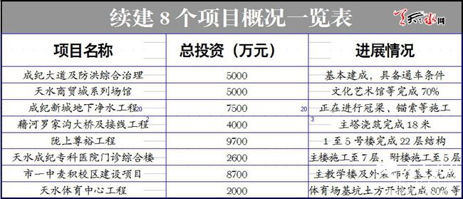 据天天天水网讯【记者李旺旺】8月2日,记者在召开的成纪新城建设领导小组会议上了解到,今年上半年,成纪新城共实施项目16项。其中,续建工程8项,项目总投资63.92亿元;新开工项目8项,项目总投资79.89亿元。