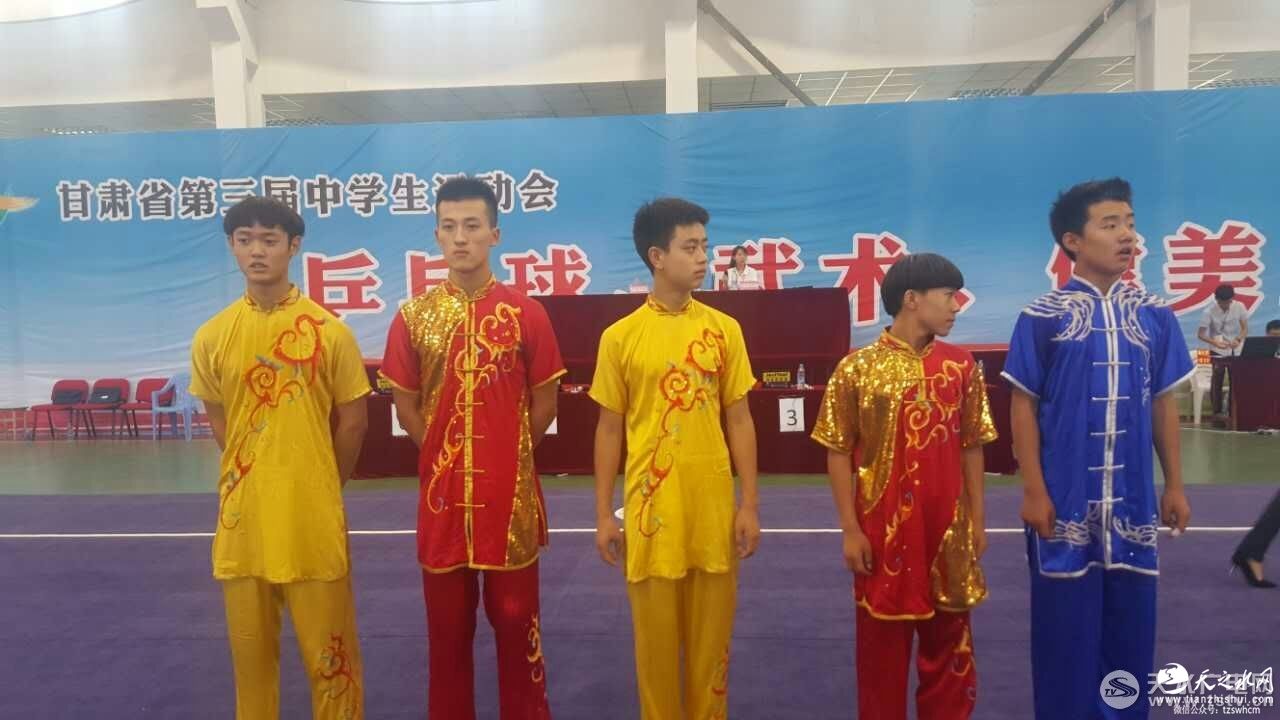 4日上午,甘肃省第三届中学生运动会武术比赛进行了男子、女子剑术,男子、女子对练项目的角逐,最终男子剑术:兰州的李雷、天水的王俊仁、张掖的李涛分获前三名;女子剑术:天水的任鹏英、定西的李亚洁、兰州的陈蕊分获前三名;男子、女子对练:兰州、天水、张掖队分获前三名。而随着这四项比赛的结束,武术比赛也圆满收官,最终兰州以149分排名团体总分第一,天水、定西以105分并列第二,而天水武术代表队此次共获得了10块奖牌,其中金牌3块。