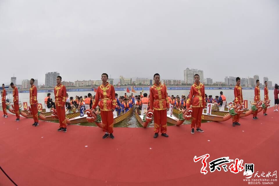 据了解,本次比赛分公开组、本地组和迷你龙舟组三个组,公开组设置22人龙舟200米直道赛、500米直道竞速赛和5000绕标赛三个项目,有来自北京、湖南、广东、广西、山东、宁夏、陕西、天津、重庆、四川、福建、甘肃12个省16支代表队416名运动员参赛;本地组设置12人龙舟200米直道赛、500米直道竞速赛两个项目,来自天水市两区五县、天水师院学院以及麦积区教体、水务、林业、住建、卫计等部门10支代表队160名运动员参赛;迷你龙舟组设置5人制200米直道竞速赛一个项目,运动员从公开组各代表队组织。8月6日分别举行5人、12人和22人龙舟200米、500米直道竞速预赛、复赛、半决赛,8月7日上午举行开幕式,并分别进行5人、12人、22人龙舟200米、500米直道竞速决赛和22人龙舟5000米绕标赛,分项举行颁奖仪式。本次比赛所在翠湖公园是集城市防洪、生态治理、文化传承、休闲健身于一体的开放式生态公园,目前已建成蓄水区、演艺广场、音乐喷泉、南北堤滨水景观及绿化工程,完成了“三桥”加固、公园整体亮化等配套服务设施建设,总体呈“一区两岸三桥”格局。该水域蓄水景观区全长4.5公里,蓄水面积54万平方米,配套绿地30万平方米、休闲娱乐场所10万平方米,是天水市最大的人工湖湿地公园,也是天水市近年来城市建设亮点工程之一。随着各项后续工程实施和改造提升,以“龙城水韵”为主题的音乐喷泉景观带和渭河南北两岸风情线实现了完美联接与组合,相映成景,情趣盎然。每当华灯初上、夜幕降临,音乐广场主题乐曲《天河注水》飘然响起,翠湖中心喷泉便伴着两岸翻飞的灯光开始喷涌舞动,映着清波涟漪的湖水,整个渭河两岸流光溢彩、美不胜收,令人流连忘返,这里俨然已经成为当地又一亮丽的城市景观。
