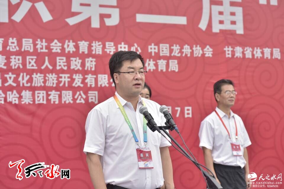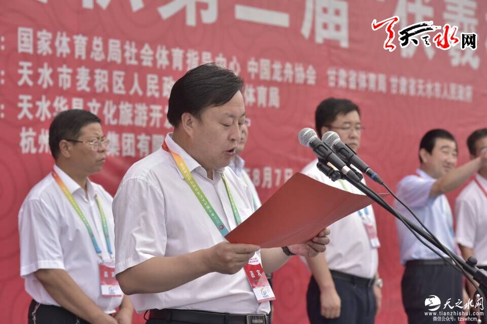 据天天天水网讯(记者何永德 杨旭 王明辉 闫鑫)龙城天水逢盛世,魅力麦积竞风流。8月6目,由国家体育总局社会体育指导中心、中1国龙舟协会、甘肃省体育局、天水市人民政府主办,天水市麦积区人民政府、天水市体育局承办,天水华昌文化旅游开发有限公司协办的2016年中国龙舟公开赛(甘肃•天水•麦积站)暨中国•天水•麦积第二届“伏羲杯”龙舟大赛,在麦积区景色秀美、风光旖旎的翠湖公园水域隆重举行。
