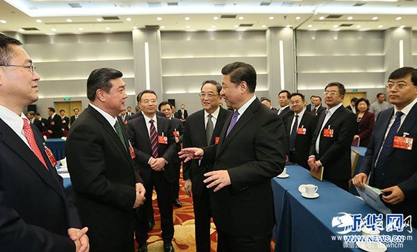 2016年3月4日下午,中共中央总书记、国家主席、中央军委主席习近平看望参加全国政协十二届四次会议的民建、工商联委员,并参加联组会,听取委员们意见和建议。新华社记者兰红光摄