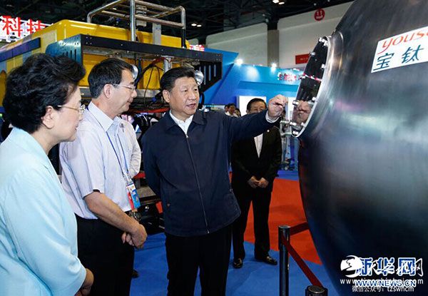2016年6月3日,中共中央总书记、国家主席、中央军委主席习近平在北京展览馆参观国家“十二五”科技创新成就展。 新华社记者鞠鹏摄