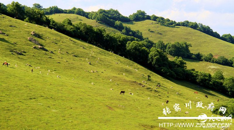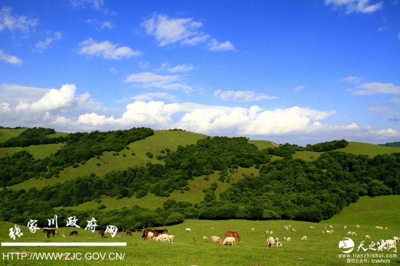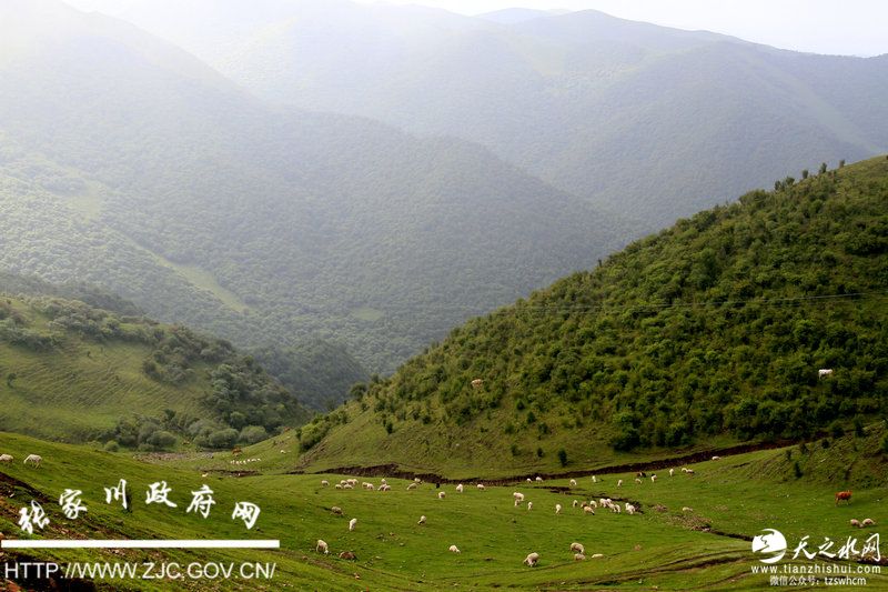 酷暑天,走进关山西麓的张家川回族自治县,一股大自然的清凉沁人心脾。清晨从县城出发,向东行车约20公里,葱翠的绿意逐渐把人包围,穿过迤逦烟村,来到一片名为白石咀牧场的开阔草地,只听马嘶羊咩,牛铃飘翠岭。