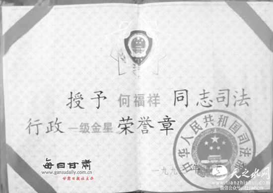 何福祥获得的金星荣誉章