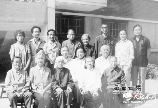 上世纪80年代,王定国(二排右二)同在兰的西路军女战士及她们家人聚会合影
