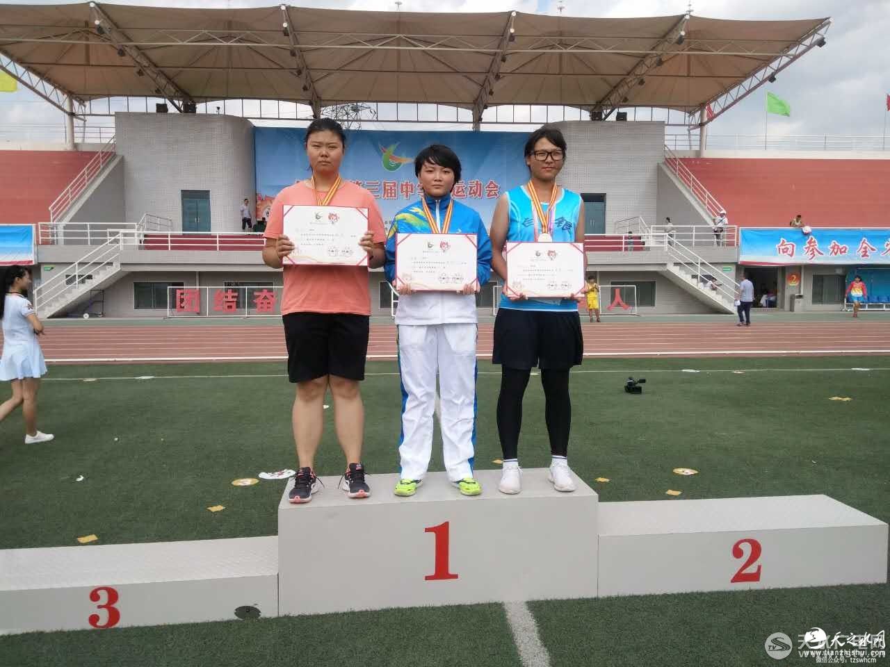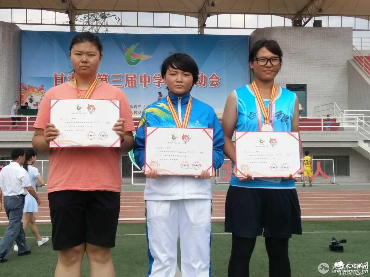 8月13号,甘肃省第三届中学生运动会的田径类的比赛今日全面开赛,来自全省14个代表队的320名运动员将陆续进行了110米栏、400米、1500米、5000米、4*100接力、铁饼、跳高、跳远、三级连跳等项目的比赛。在女子3000米决赛中天水队刘彩彩最终以11:03.9 的成绩破11:05.9的比赛纪录,获得该项目的金奖。女子铁饼预决赛天水队李晓梅以31.09米的成绩获该比赛金奖。