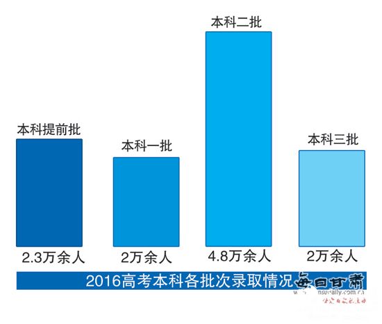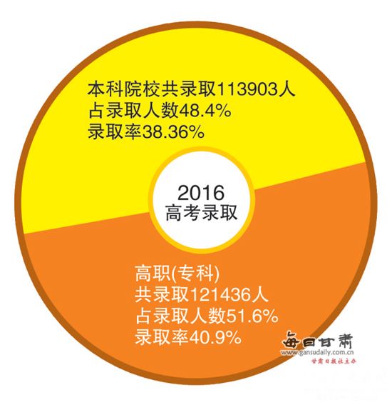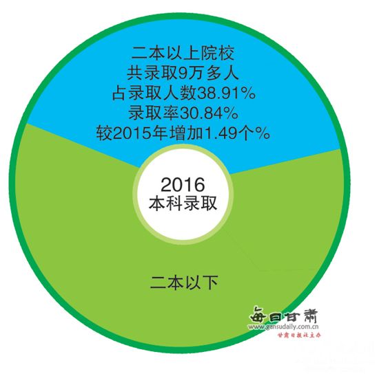 据每日甘肃网8月26日讯(兰州晨报记者 魏娟)8月25日,2016年我省普通高校招生录取工作全面结束。记者从甘肃省教育考试院获悉,本科提前批、本科一批、本科二批、本科三批、高职(专科)批等5个批次共录取考生23.5万余人。除9月初高职(专科)批还将补录少量考生外,截至目前,我省今年的高考录取率为79.26%,较2015年增加1.26个百分点。东风场区、嘉峪关市录取率在全省占据前列,兰州市录取率排名第五。