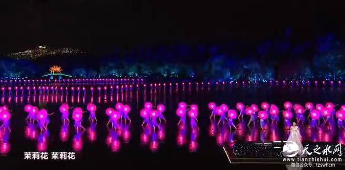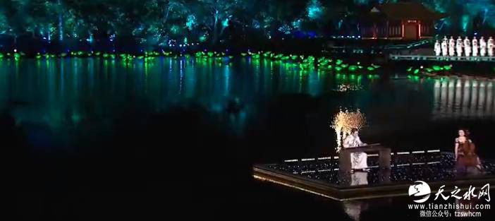 作为杭州最有代表性的民间小调,《采茶舞曲》在音乐上实现与开篇《春江花月夜》水乳交融的无缝连接。在西湖最美的夜色中,漫山遍野的采茶女,令整个西湖都随之轻盈律动。