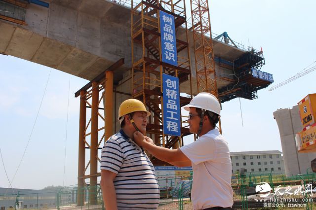 今年7月初的一天,正在抓紧施工的将军塘特大桥工地,一名施工作业人员虽然戴了安全帽,但没有按规定系好下颚带,就在墩身上面拧螺帽。碰巧那天安全员在场,发现后立即制止了他的违规行为,要求他立即按规定系好安全帽下颚带。
