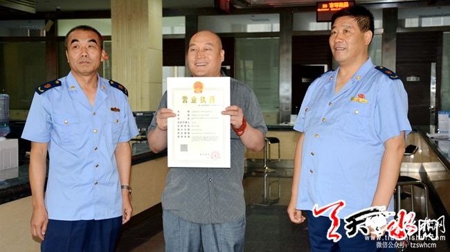 据天天天水网讯【记者 邵兰霞】9月14日上午,天水市工商行政管理局工作人员为我市一企业负责人安雷刘颁发了首张“五证合一 一照一码”营业执照,这标志着天水市“五证合一、一照一码”登记模式全面启动。