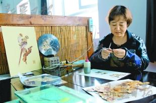 9月10日,博湖县阿勒奇民族工艺品有限公司工作人员在制作芦苇工艺画,备战第五届中国—亚欧博览会。