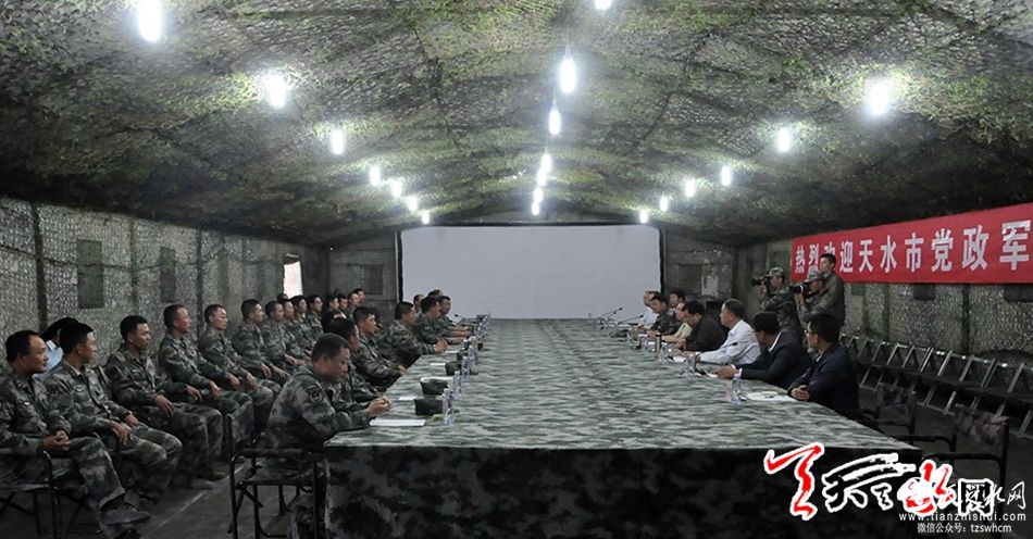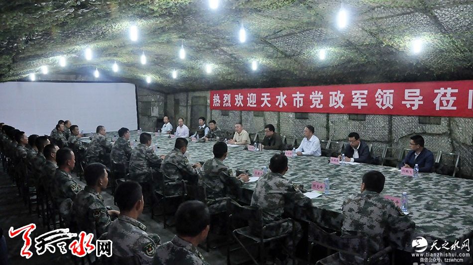 在外训部队营地,市党政军慰问团向部队官兵送上了带去的花牛苹果等慰问品,并与部队官兵进行了座谈,详细了解他们的吃住条件和训练目标、训练成果等情况。王锐指出,天水是68202部队的第二故乡。近年来,全市各级党政军组织紧贴强国强军的时代要求,顺应国家军队改革发展大势,深入扎实开展创建活动,有力推动了双拥工作创新发展,走出了一条具有天水特色的军民融合深度发展的路子。68202部队作为驻军部队的主要军事力量,充分发挥信念坚定的示范作用、强市富民的骨干作用、急难险重任务的突击作用、维护社会稳定的卫士作用和精神文明建设的带头作用,成为天水军民融合深度发展的践行者和示范者。特别是今年我市再次荣获全国双拥模范城称号,如期实现了双拥模范城“五连冠”目标。这是全市党政军民共同的政治荣誉,这些成绩的取得与68202部队官兵的积极参与和大力支持是分不开的。