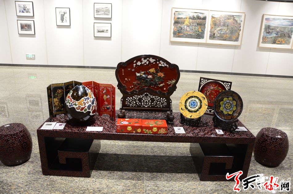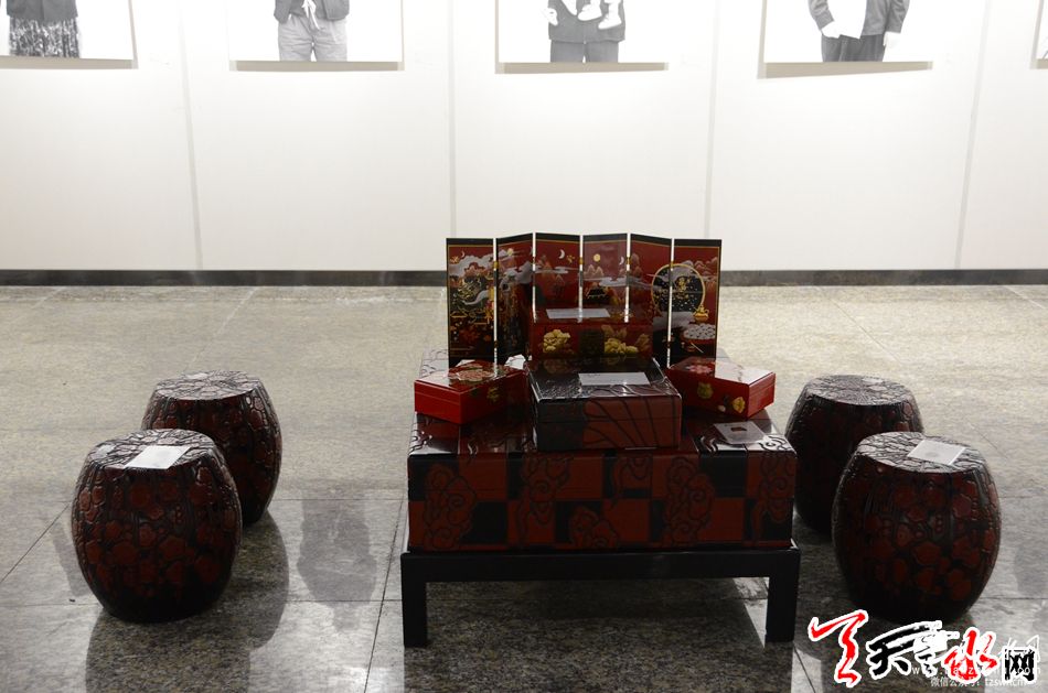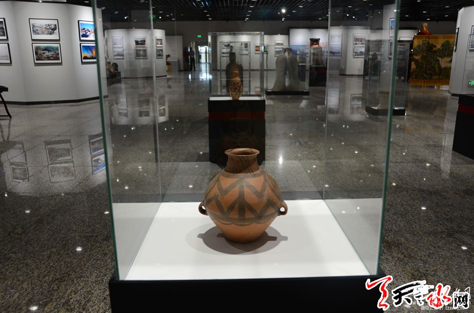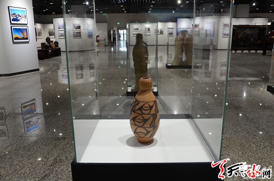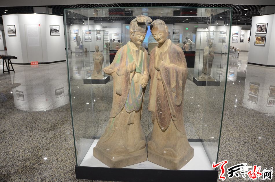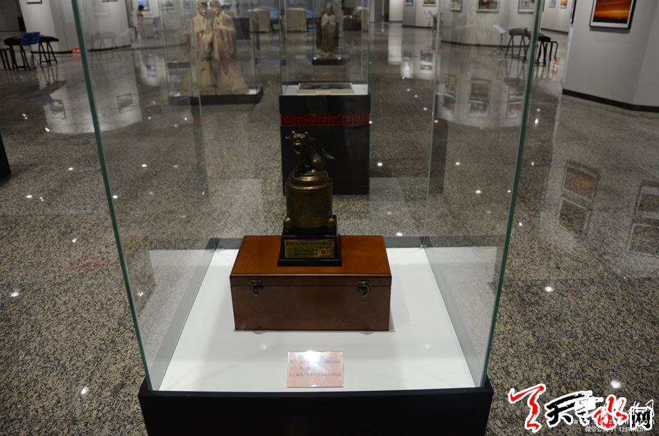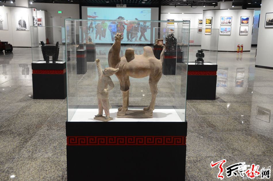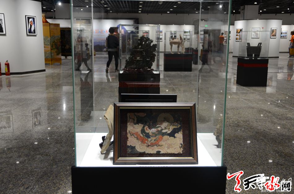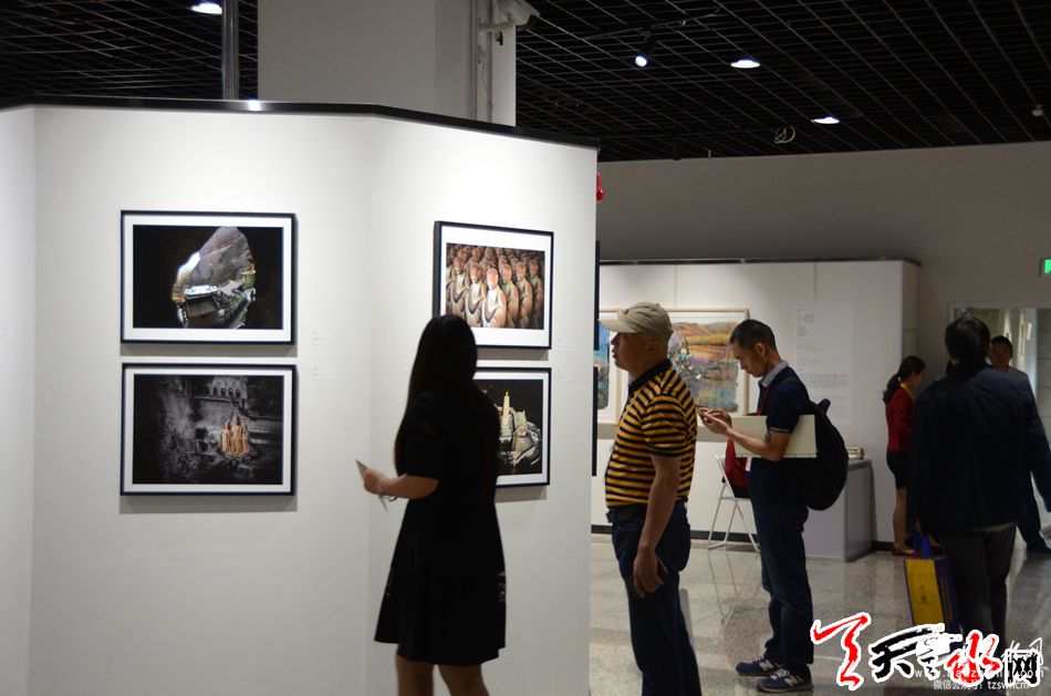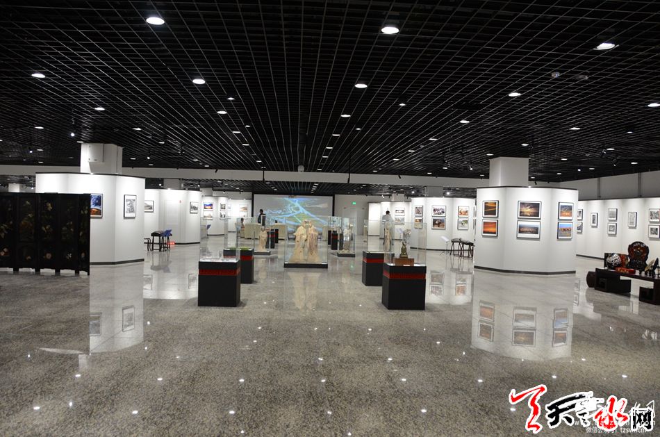 在位于敦煌国际会展中心C区,由我市和省摄影家协会共同主办的“影像丝路--国际摄影艺术作品展”展厅布局大方、典雅。占地1500多平方米的展厅内,除了四壁和设计别致的立柱上展出由马克·吕布、王庆松、陈农等国内外摄影大师的200余幅摄影作品和影像丝路天水摄影双年展主题展部分优秀作品之外,还整齐有序地在展厅布置了麦积山石窟雕塑、大地湾陶器、马家塬战国墓葬出土文物和天水雕漆、鸳鸯玉器、天水竹雕、天水泥塑、天水古琴、天水古筝等具有“天水元素”的的文化艺术作品130多件。除此之外,在以“华夏文明在甘肃”为主题的甘肃展馆内,代表我市伏羲文化、麦积山文化、大地湾文化、雕漆文化等的70多件文化文物精品在展厅显著位置予以展示。所有这些文化文物精品,都以其代表的悠久历史、反映的丰厚文化信息和自身精致的艺术工艺吸引了众多与会中外嘉宾的眼球。