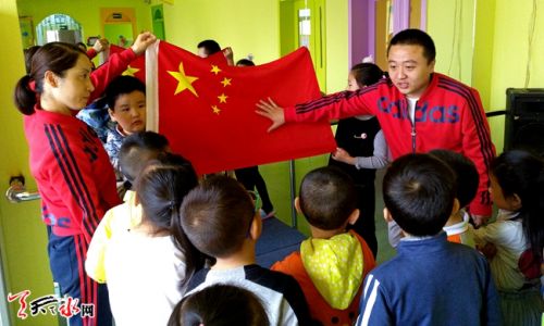 ▲9月29日,秦州区3Q宝贝幼儿园的老师为孩子们介绍国旗。国庆前夕,天水市中小学和幼儿园开展了以讲授国旗、国徽、国歌相关知识的爱国主义教育活动,从小培养激发学生的爱国情感。(天水日报记者 孙镇 摄)