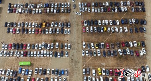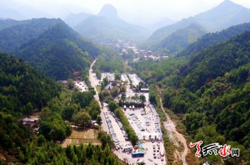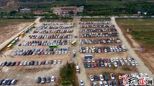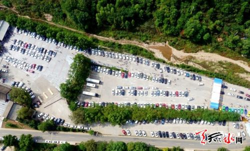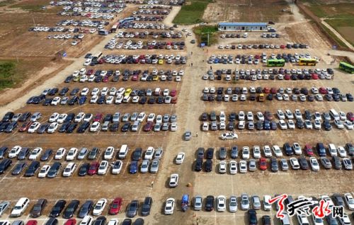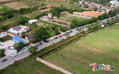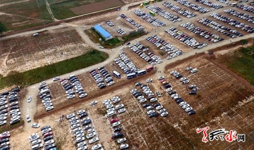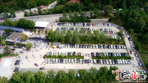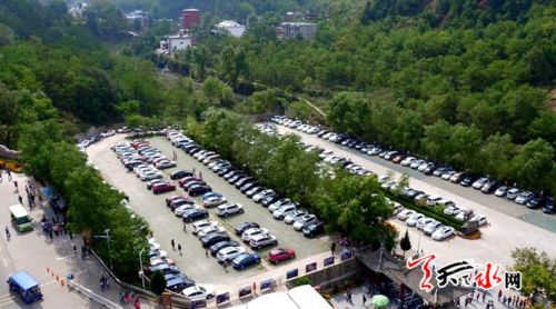 ▲麦贾公路上前往麦积山景区的车辆 2016年10月3日航拍