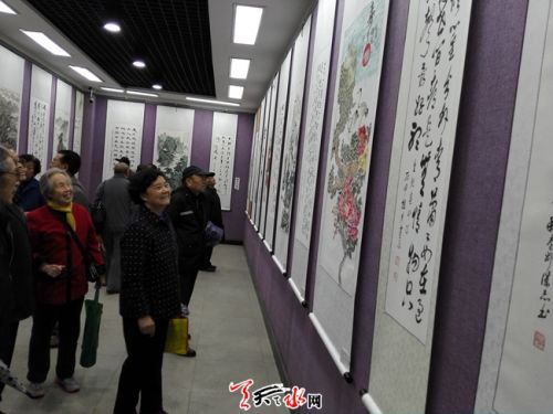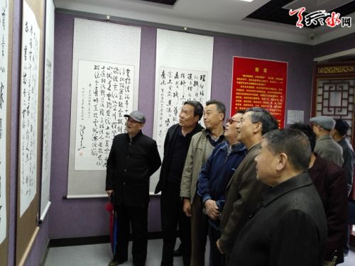 ▲10月9日是中国传统节日重阳节,也是全国第4个老年节和甘肃省第29个老人节。当天,天水市重阳节老年书画展在市美术馆开展。本次展览共展出书法绘画作品230余幅,充分展示了我市老年书画的新成果新风貌。市领导王光庆、王正茂、王子生、温利平、马武生参观展览。(天水日记者马哲 摄)