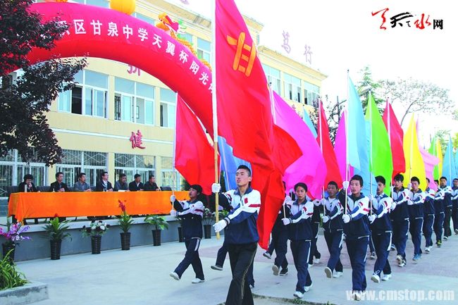 始建于1958年的甘泉中学,在校学生1100人,教职工103人。近年来学校确定了“一手抓管理促质量、一手抓体育创特色”的办学思路,学校领导班子十分重视体育工作,将体育工作作为学校特色来抓。2013年以来,先后被省体育局确定为甘肃省“高原人才开发计划”田径训练网点学校(为天水市唯一一所中学级“高原人才开发计划”田径训练网点学校),被麦积区教体局命名为“阳光体育示范校”。被省教育厅、省体育局评为“省级体育传统项目校”,被省教育厅评为“快乐校园”示范校,2015年10月被教育部评为全国首批学校体育工作示范校。2016年3月被天水市委、市政府命名为“文明单位”。2016年7月被教育部评为“全国青少年校园足球特色学校”。