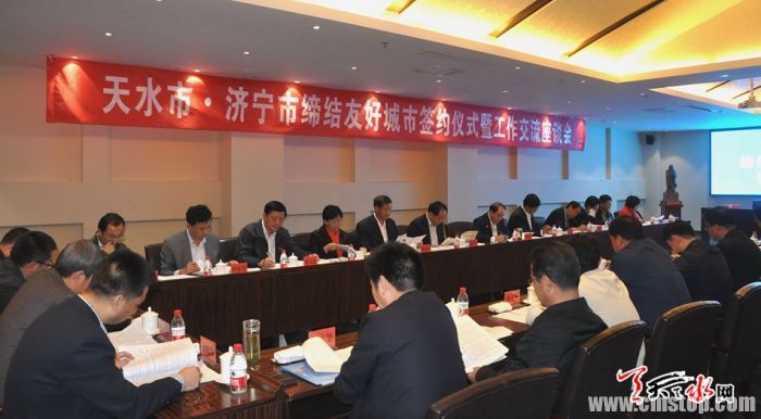 天水市委常委、宣传部长王正茂,济宁市市委常委、宣传部长、曲阜文化建设示范区党工委书记李昌文分别代表天水、济宁签订了友好城市协议。天水市政府秘书长逯克宗参加签约仪式。