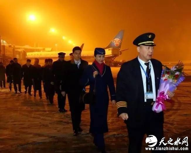 截至2016年1月1日,南航新疆分公司以安全飞行61年保持中国民航最高安全纪录。图为2015年最后一个航班的机组成员走下飞机。