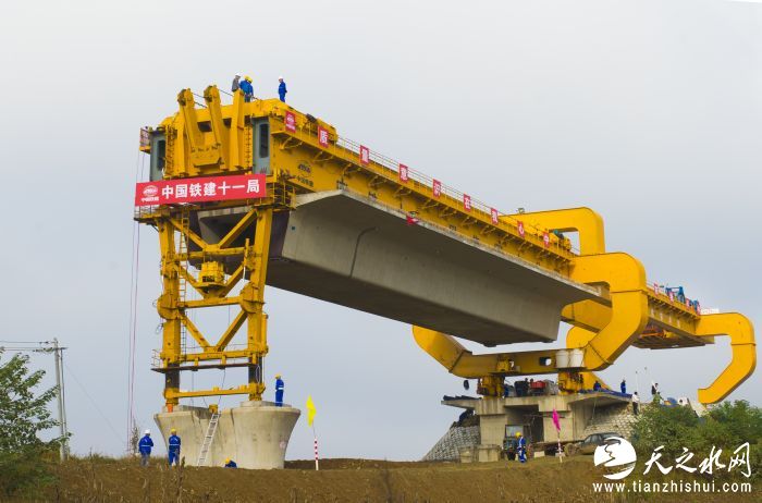 中国铁建十一局集团六公司承建汉十高铁37座桥梁,共计箱梁780孔,箱梁架设里程达56.7公里,首孔32米箱梁于9月1日在安陆府河特大桥成功架设。仅隔44天后,中铁十一局六公司经过三个多月的努力,使其运架梁所需物资、设备、人员已全部集结到位,具备架梁条件,在汉十高铁5标段油坊湾特大桥正式拉开运架梁序幕,标志兴建的蒙华、郑万、汉十在襄阳交汇的三大铁路建设进入快车道。