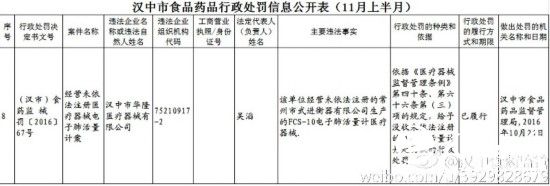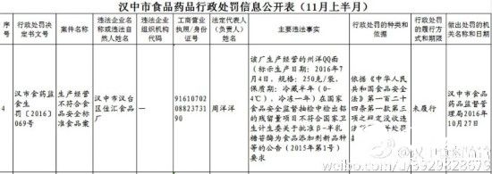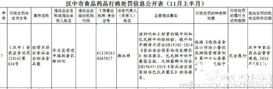 11月8日,汉中市食药监局通过官方微博,及时发布了2016年第7期8起汉中市食品药品行政处罚案件信息。
