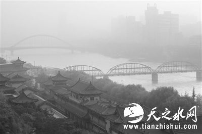 昨日严重污染仍然“纠缠”着兰州。首席记者 裴强摄