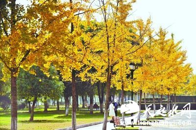 在华中科技大学、武汉生物工程学院、湖北中医药大学等多所高校内,银杏树也成为校园秋日美景。网友“冰皮蛋糕”发微信称,前日,她与老公牵手漫步在武大校园,偶遇一片银杏树,感觉很美,希望每天都有这种幸福的感觉。(记者杨升通讯员赵旋)