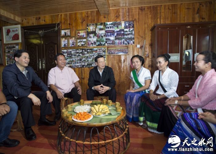 这是11月8日,张高丽在景洪市勐养镇曼掌村看望少数民族村民,调研少数民族新农村建设。新华社记者 王晔 摄