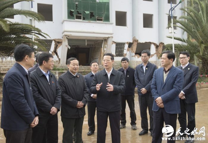 这是11月7日,张高丽到昭通市鲁甸县实地考察龙头山镇原镇政府地震遗址。新华社记者 王晔 摄