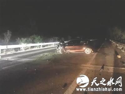 事故现场,一辆小轿车横停在车道上