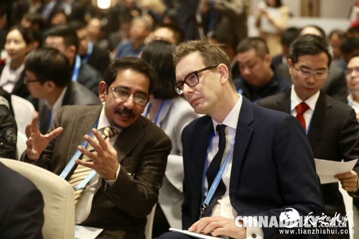 PTV巴基斯坦国家电视台(伊斯兰堡)市场营销及转播业务主任哈什米(左)、英国文化教育协会中国区艺术和创意产业总监马昌(右) 朱兴鑫摄