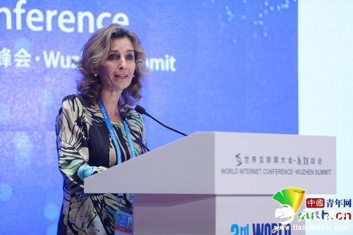 西班牙电信数字化教育公司首席执行官卡罗琳娜发言。中国青年网记者张炎良摄