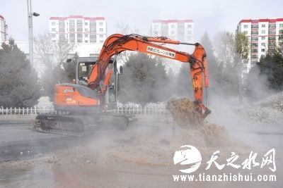 中国甘肃网11月22日讯 据兰州晚报报道(记者 高慧霞 文/图)11月21日10时40分,位于酒泉市肃州区敦煌路东段的城区集中供热一级管网发生泄漏,致使国电热电联供区域53座换热站、580万平方米、6万户群众供暖受到影响。