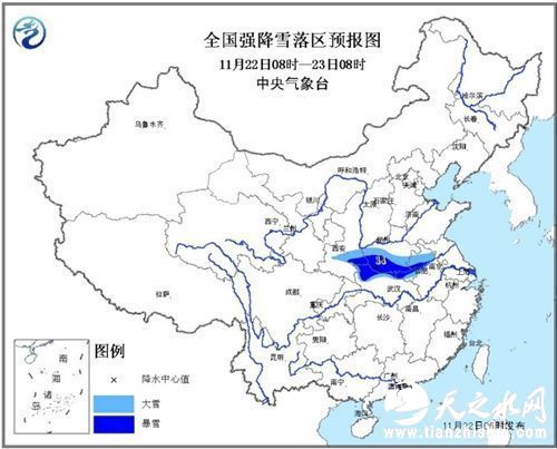 人民网北京11月22日电据中央气象台网站消息,中央气象台11月22日06时继续发布暴雪蓝色预警:预计,22日08时至23日08时,陕西东南部、河南中南部、安徽北部及湖北北部等地的部分地区有大雪,局地有暴雪(10~14毫米),上述地区新增积雪深度3~6厘米,局地可达8厘米以上。