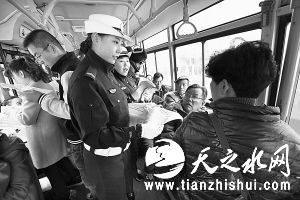 七里河交警队向乘客发放限行宣传单 西部商报记者丁凯摄