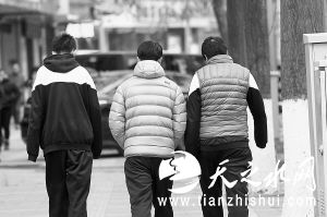 学生穿上了羽绒服 西部商报记者强江波摄