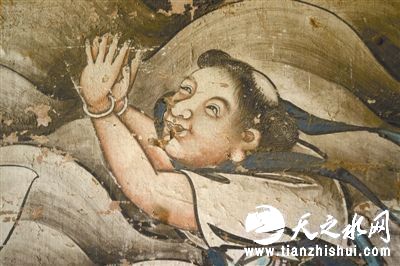 例如今年被发现失窃的晋中市榆次区“东左付村圣安寺”壁画,由于历史原因,墙壁上的一幅观音像上半部分被用白灰抹掉了,只能看到观音像下方的灵兽和童子,其中童子保存更为完好,盗窃者便将童子的部分揭走了。