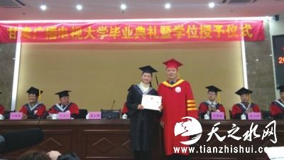 甘肃广播电视大学校长张方明在致辞中,向圆满完成学业的毕业生表示祝贺,同时殷切寄语全体毕业生说:“我知道在这几年里你们都付出了很大的努力,上班那么累,你们也想下班之后躺在床上好好休息,可你们却端坐书桌,只为离心中的梦想更近一些;假期那么短,你们也想在假日周末与亲朋好友好好聚聚,可你们却来到学校,只为打开那扇知识的大门;世界那么大你们也想去看看,但你们却拿起书本,只因为对未来的自己有着更好的期许。苦尽甘来,今天大家的辛勤付出终于开花结果,大家毕业啦!” 记者景积栋