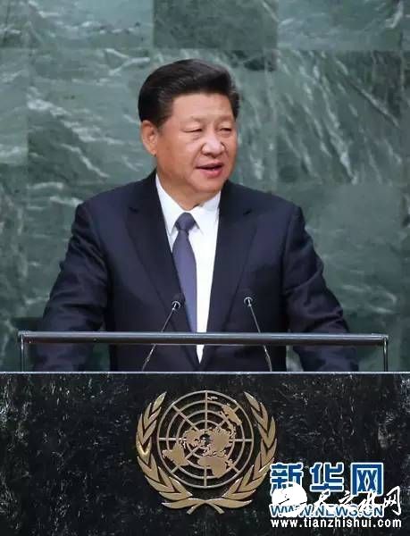 图为:2016年9月26日,国家主席习近平在纽约联合国总部出席联合国发展峰会并发表题为《谋共同永续发展做合作共赢伙伴》的重要讲话。