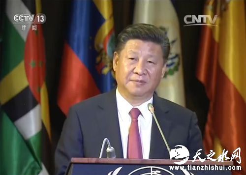 在热烈的掌声中习近平发表题为《开创中拉媒体合作新局面》的致辞