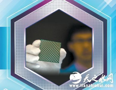 一名研发工程师展示“神威·太湖之光”所使用的“申威26010”众核处理器。
