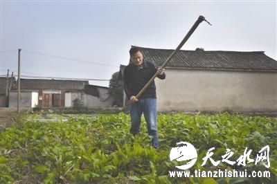 11月18日,大邑县新场镇,邵传远扛起锄头下地种菜