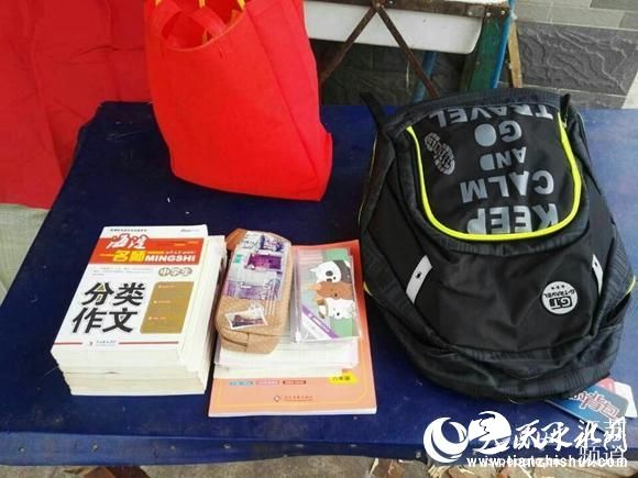 当地政府送给小熊的书籍和学习用品。