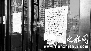 昨日,记者来到位于石景山区海特花园57号楼的丹彤健身俱乐部,顺着57号楼北侧的楼梯拾级而上,便能看到紧锁的大门。近2米宽的玻璃门上,从左到右依次贴着苹果园工商所的投诉电话、石景山区人民法院的公告以及健身房的一份告知书(如图)。
