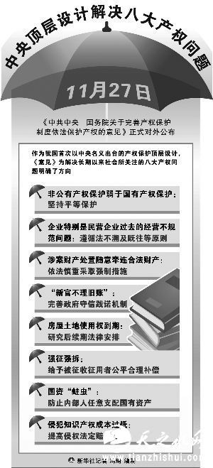 11月27日,《中共中央国务院关于完善产权保护制度依法保护产权的意见》发布。引人注目的是,《意见》在多处对公众关心的土地与房屋财产问题,作了说明和安排,明确提出:研究住宅建设用地等土地使用权到期后续期的法律安排、细化规范征收征用法定权限和程序、赋予农民更多财产权利等。